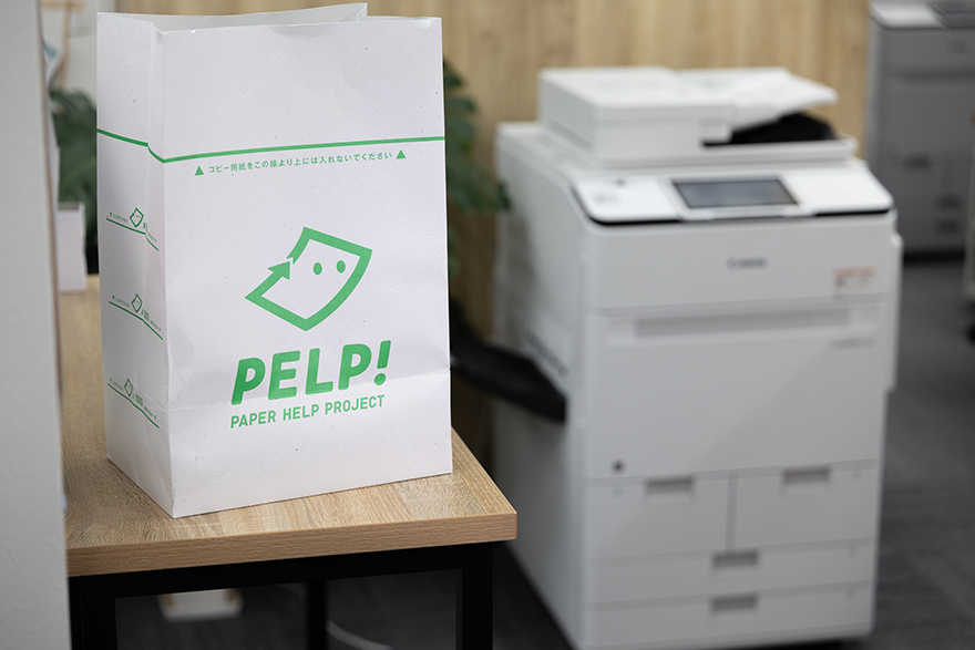 オフィスの古紙を回収して再生紙へ加工するアップサイクルサービス「PELP!(ペルプ)」を導入しています。